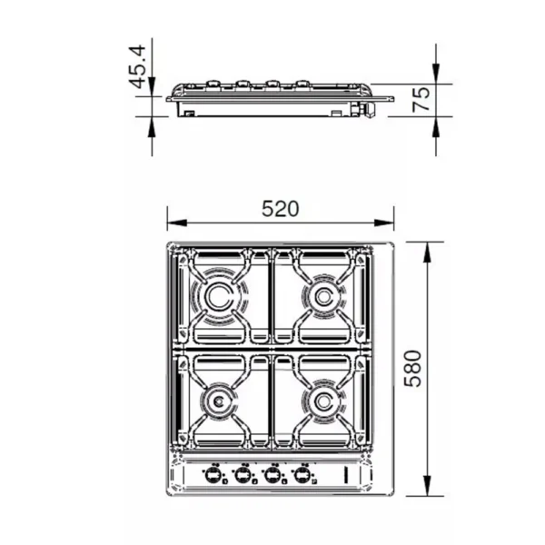 – 4 hornallas de tres diferentes potencias para optimizar su uso.