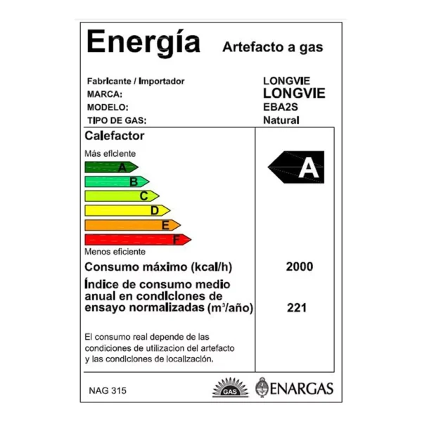 Calefactor a gas Longvie Tiro Balanceado Eba2s 2000kcal Recta