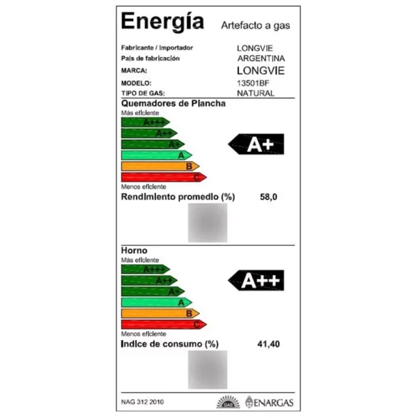 La alta calidad de los materiales constructivos aplicados con verdadero equilibrio permiten aprovechar al máximo toda la potencia de sus quemadores sin generar un alto consumo energético, por lo cual posee Eficiencia Energética A++ en horno.