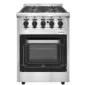 Cocina multigas. Plancha de metal. Rejillas superiores de alambron. 4 Hornallas. Gabinete de metal. Encendido electronico. Luz en el horno. Horno visor. Tapa de quemadores de metal. Horno autolimpiante. Cajon parilla. Calienta platos.