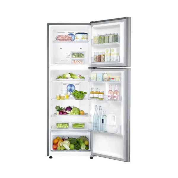Heladera Freezer Superior Twin Cooling Plus™, 321 L HACÉ HIELO Y ENFRIÁ BEBIDAS Entregá de manera rápida aire muy frío para congelar o enfriar velozmente. Con solo tocar un botón, Power Cool enfría rápidamente alimentos y bebidas, mientras que Power Freeze es fantástico para congelar, endurecer alimentos congelados y hacer hielo. FRESCURA Y HUMEDAD GRACIAS A TWIN COOLING Solo Twin Cooling Plus™ crea un entorno favorable para preservar los alimentos frescos en la heladera con un 70% de humedad, comparada con el 30% de un las heladeras convencionales. De esta manera, mantiene los ingredientes frescos durante más tiempo sin secarlos. 321 L | 330 L bruta 60 cm ancho neto Eficiencia energética A+