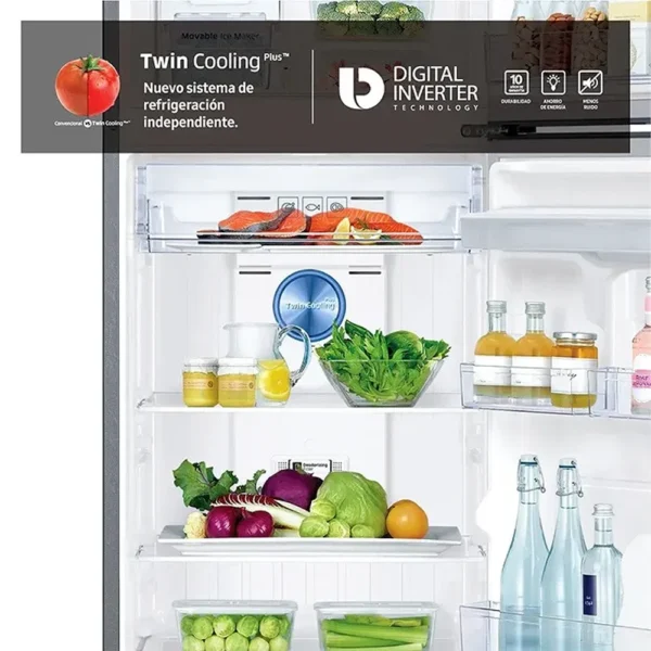 Trabaja más tiempo de manera más silenciosa y usa menos energía: La Tecnología Digital Inverter ajusta automáticamente la velocidad del compresor en respuesta a la demanda de enfriamiento a través de 7 niveles. Usa menos energía, minimiza el ruido y reduce el desgaste para un desempeño más duradero y la capacidad neta de la heladera es de 318Lts.